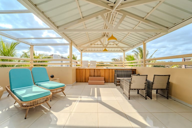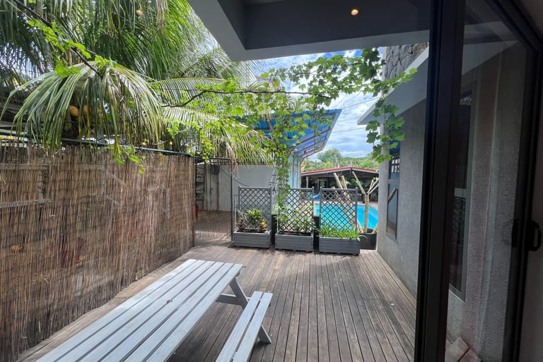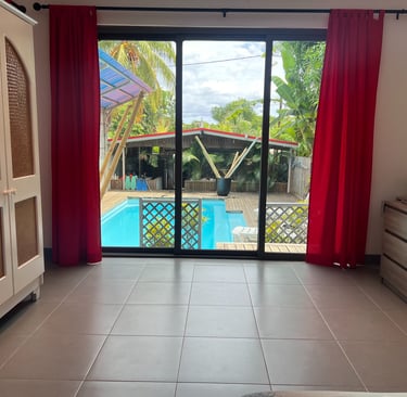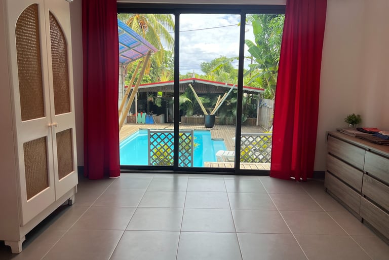 2 chambres climatisé : suite parentale + chambre avec vue et accès piscine