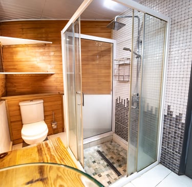 2 salles de bain modernes (dont 1 dans la suite), douche à l’italienne