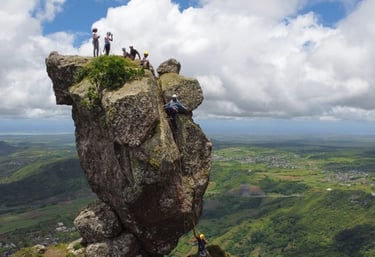 Pieter Both – Deuxième plus haut sommet de Maurice, reconnaissable à son énorme rocher en forme de tête humaine au sommet. La randonnée est technique et vertigineuse, réservée aux marcheurs expérimentés. Le sentier débute dans les forêts de Moka avant d’atteindre des crêtes escarpées offrant une vue spectaculaire à 360° sur l’île. L’ascension complète dure environ 4 à 5 heures aller-retour, avec une partie finale en escalade nécessitant prudence et bonne condition physique.